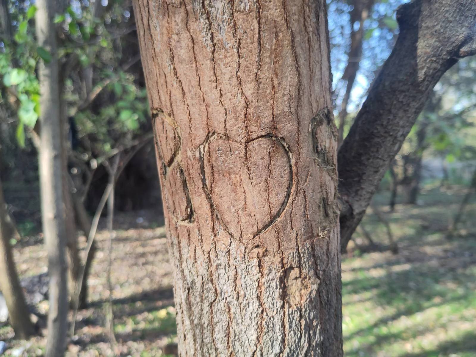 Heart and letters carved in a tree in a Serbian informal living site, October 2025, credits: Sofie Noe Rosenblad